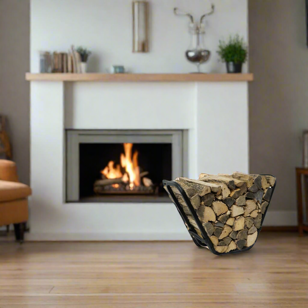 The perfect little woodrack for anywhere. Use it indoors by the fireplace or outdoors in the yard or camping.