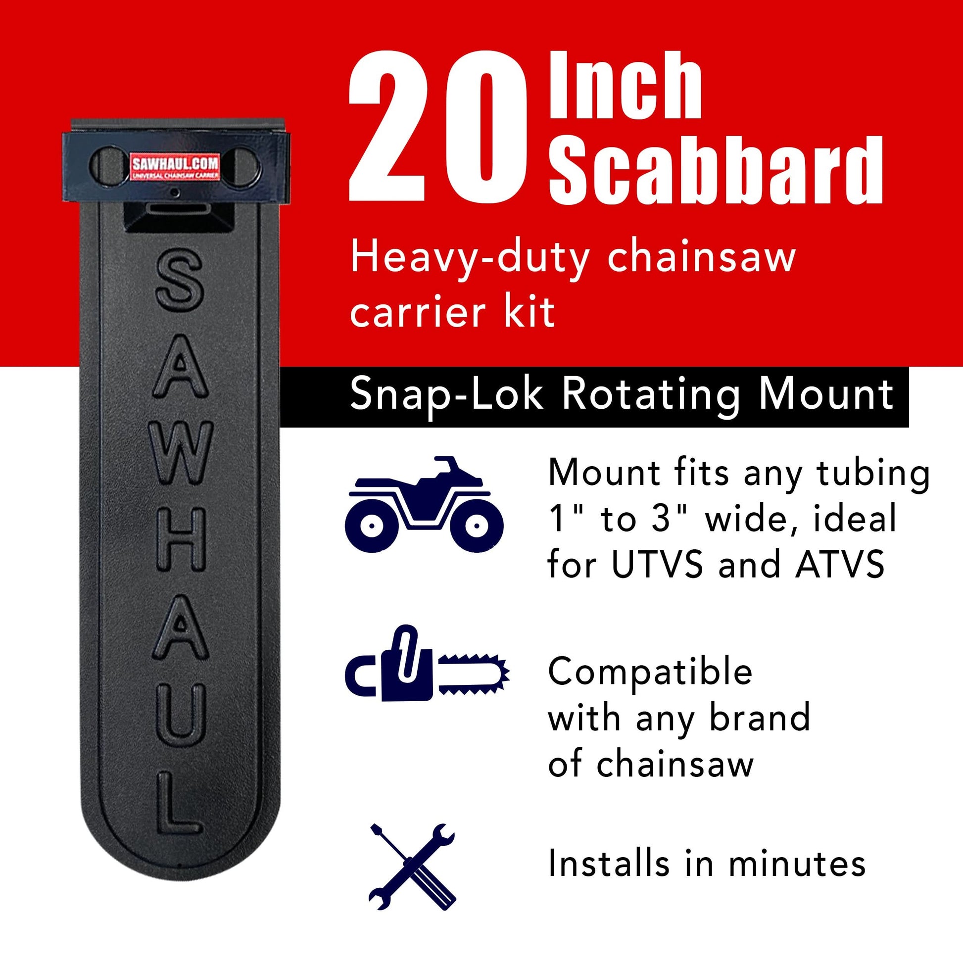 The GearHaul Snap-Lok® System offers all of the Wall-to-Woods features, conveniences, protection, and security you have come to know and love about SawHaul! Carry Your Saw. Protect Your Saw with added versatility to mount at various angles. The Snap-Lok® System streamlines your wood-cutting needs and helps ensure you have a productive adventure. Featuring our new Modular Snap-Lok® System extends compatibility for additional accessories. This kit includes the Snap-Lok Rotating Base Mount, SawHaul Bracket, Tubing & ROPS Adapter, and the Pro Grade Scabbard.