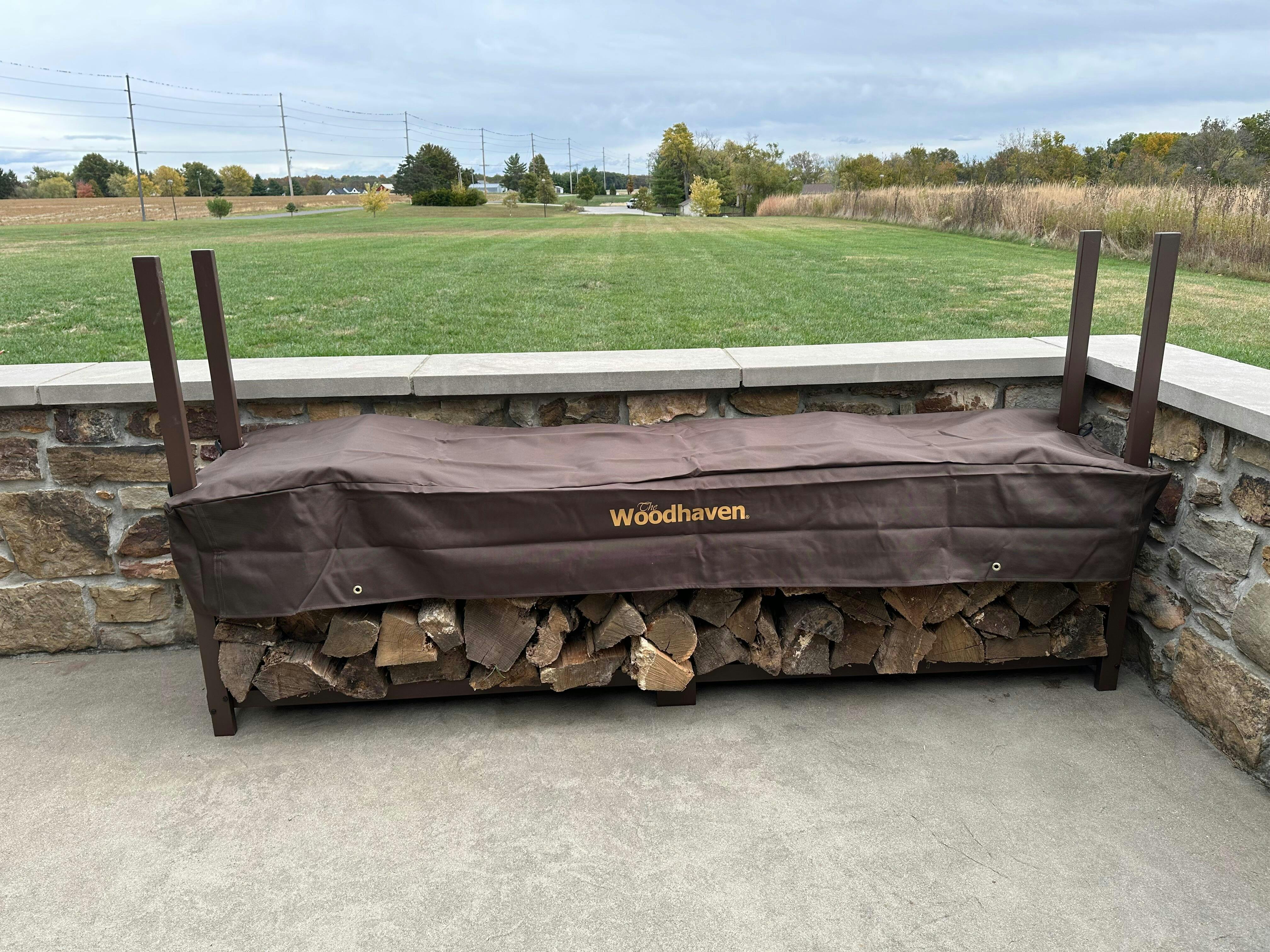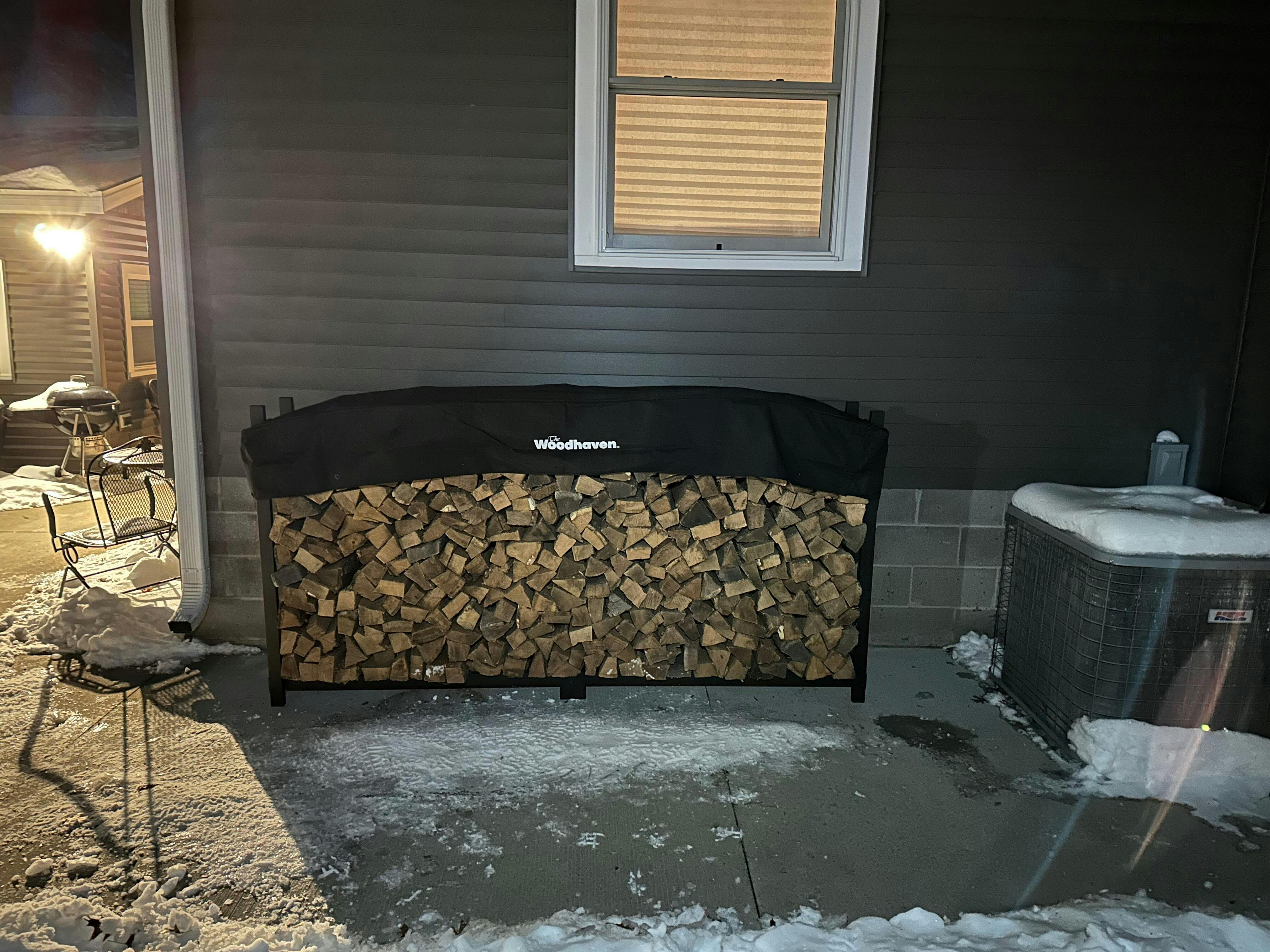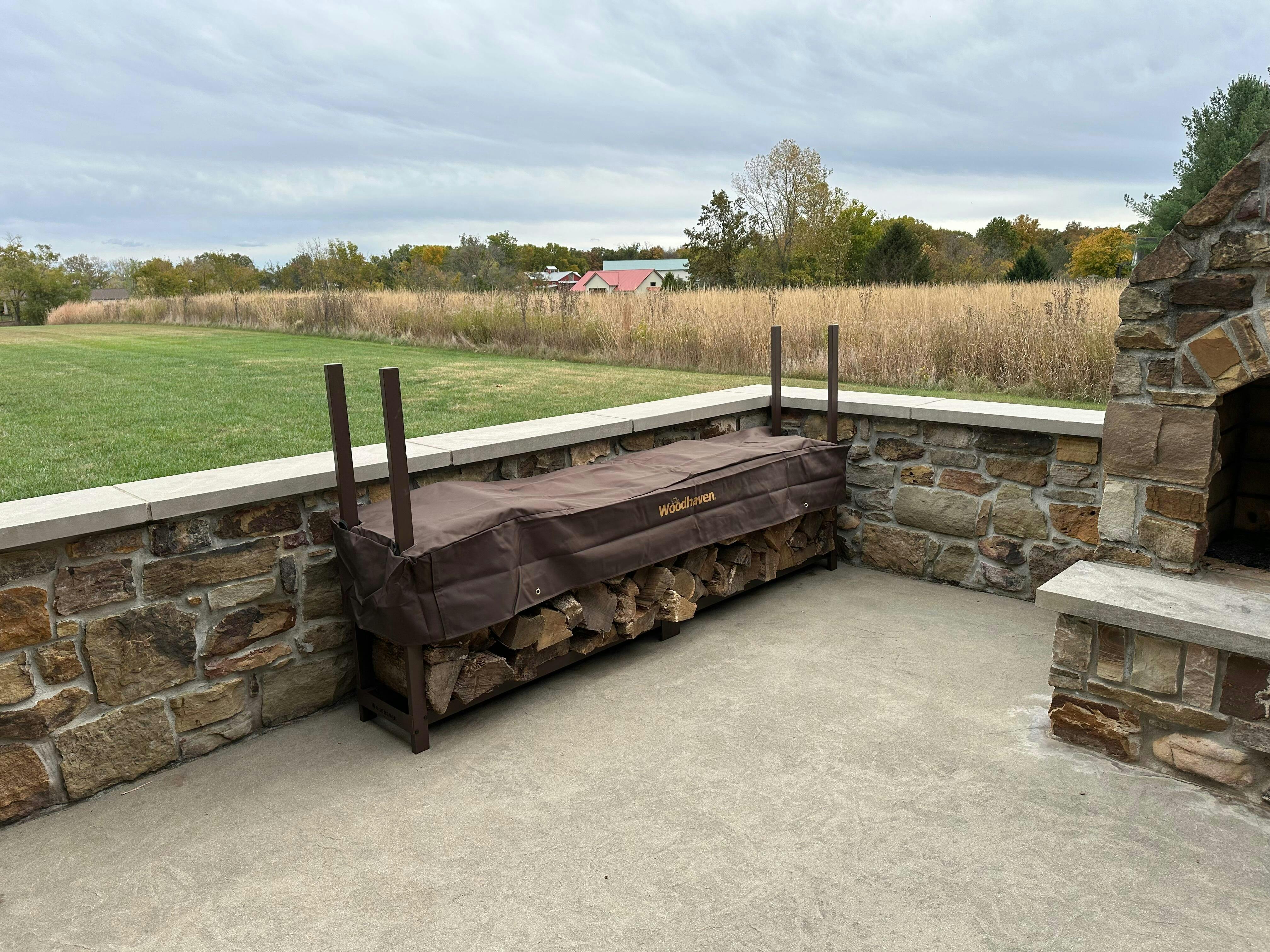 The Woodhaven 8ft Log Rack comes with a uniquely designed standard cover to keep the top rows of wood completely dry and ready to burn. This cover also allows for air to flow through the firewood, reducing mold and mildew and promoting curing!